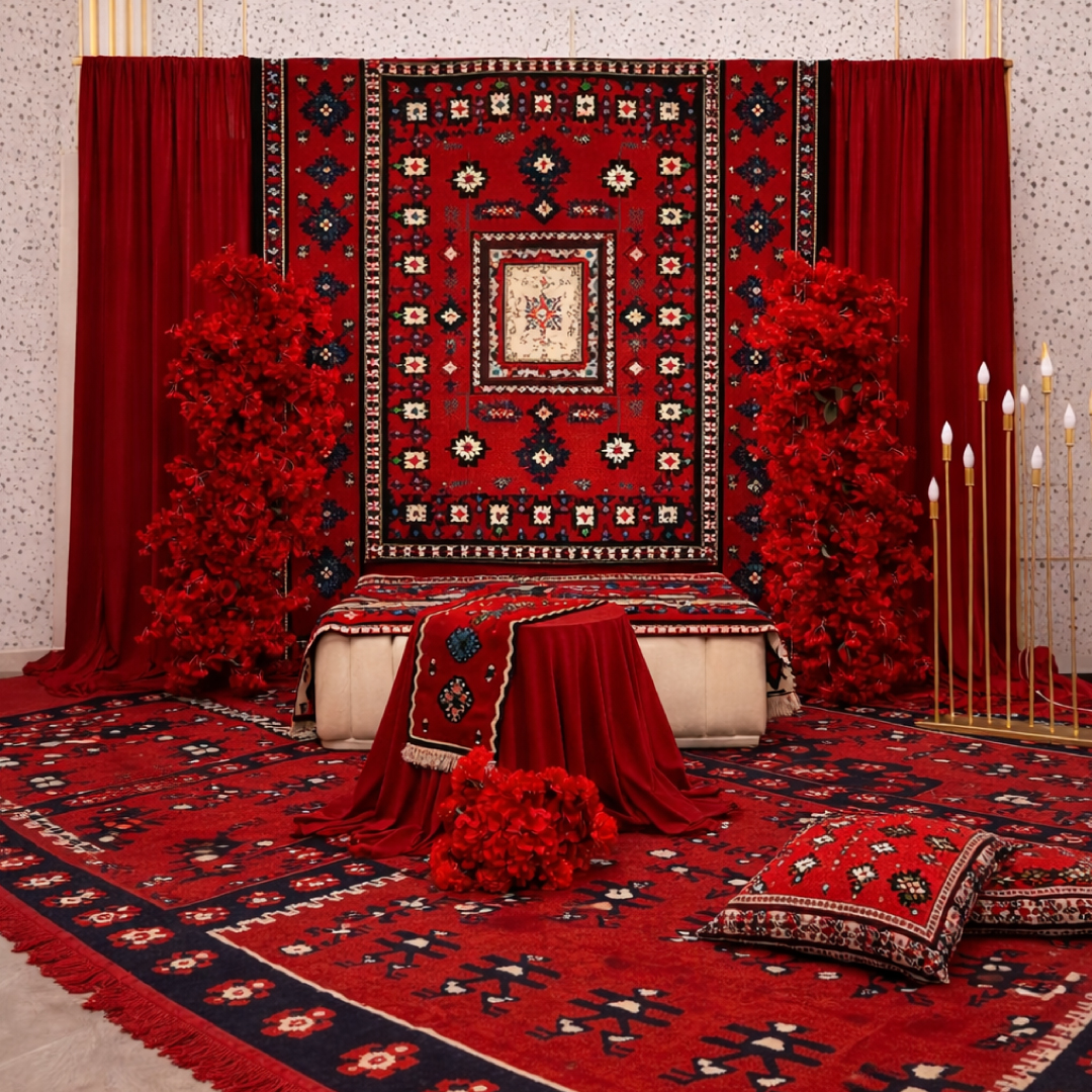 This traditional concept brings the beauty of cultural heritage to your special night, using rich red colors, classic carpets, and elegant details that create a warm and emotional atmosphere.