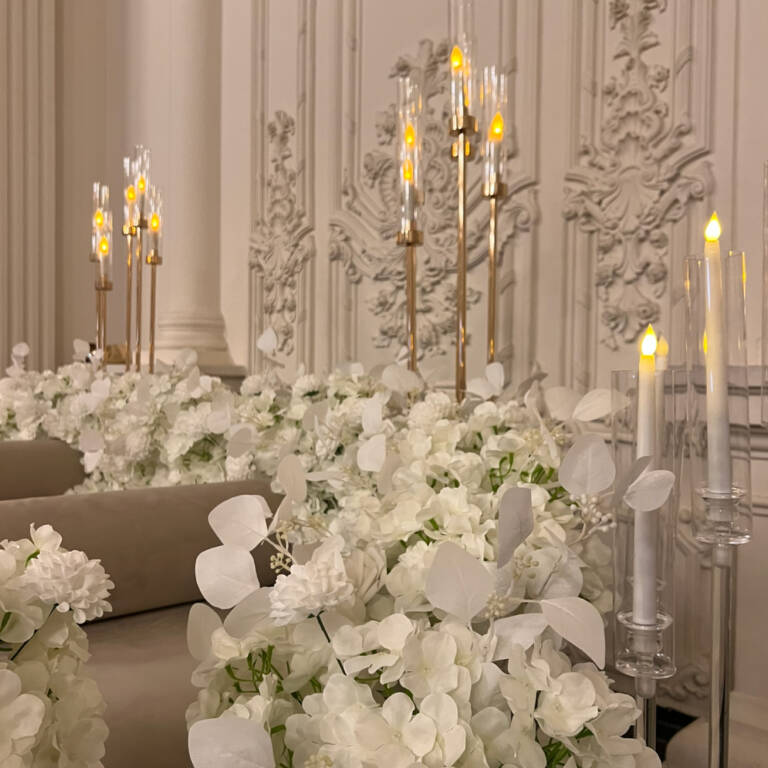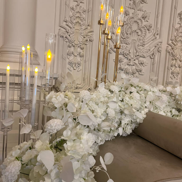 Experience the elegance of a true royal celebration with our Royal Henna decor. Designed with luxurious white floral arrangements, warm candle lights, and palace-style details, this setup creates a majestic atmosphere perfect for unforgettable henna nights, beautiful photos, and special memories. A perfect choice for brides who want a classy and timeless celebration.